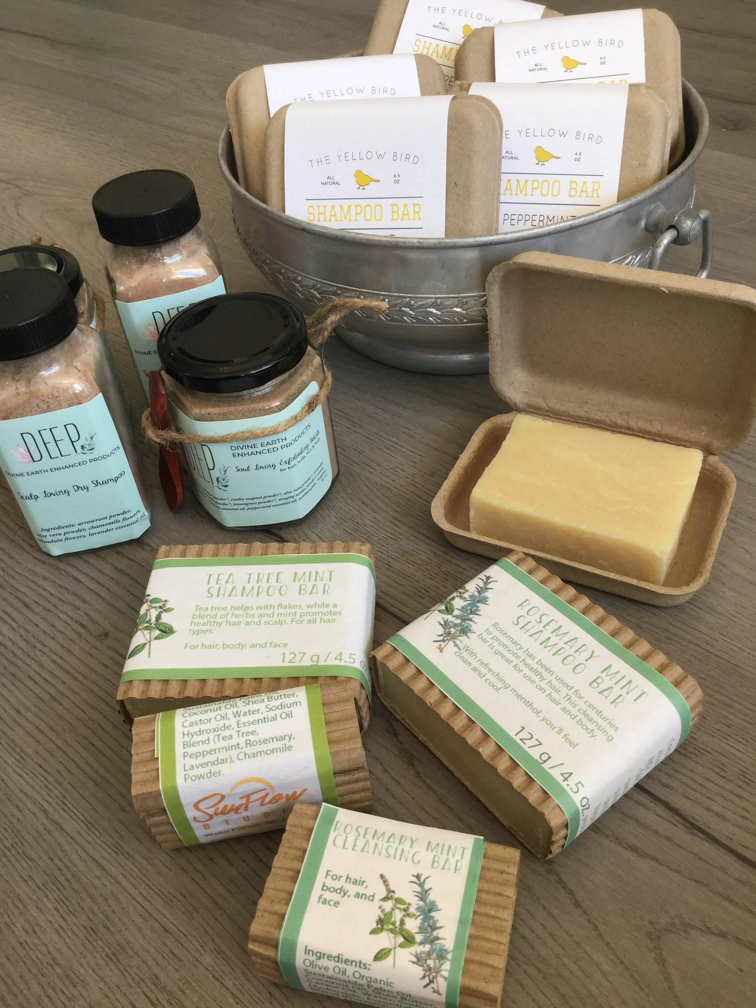 I will admit I was a little more leery of this adventure as my hair is long, curly and graying, the trifecta of challenging hair. Determined to give up the plastic, I once again dove into research. I reviewed several companies and their ingredients and found The Yellow Bird Company, a local family owned business with a mission I could get behind. Simply lather the bar in your hands, rub on your head, massage into scalp and rinse clean.